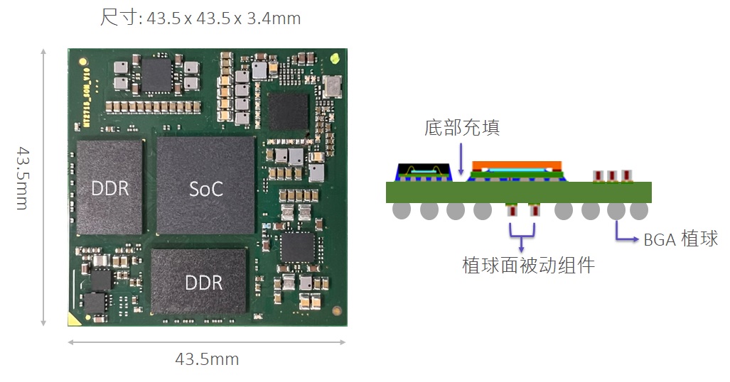 环旭电子采用先进底部充填、BGA植球、植球面被动组件及高密度SMT制程技术,所开发出来的车用运算模块包括运算SoC、动态随机存储内存(DDR)和电源管理(PMIC)等重要控制组件,并将其独立于主板之外。这种模块化设计不仅减少了主板面积,提升了运算效能(例如运算速率和配电网络表现),还能提升驾驶座舱系统的质量和效能。同时,车厂可以专注于主板的开发,从而减少整体开发时间,节省研发成本。此外,采用车用运算模块还能降低车厂主板的成本,使得高迭构层次的PCB设计在较小面积的模块内。