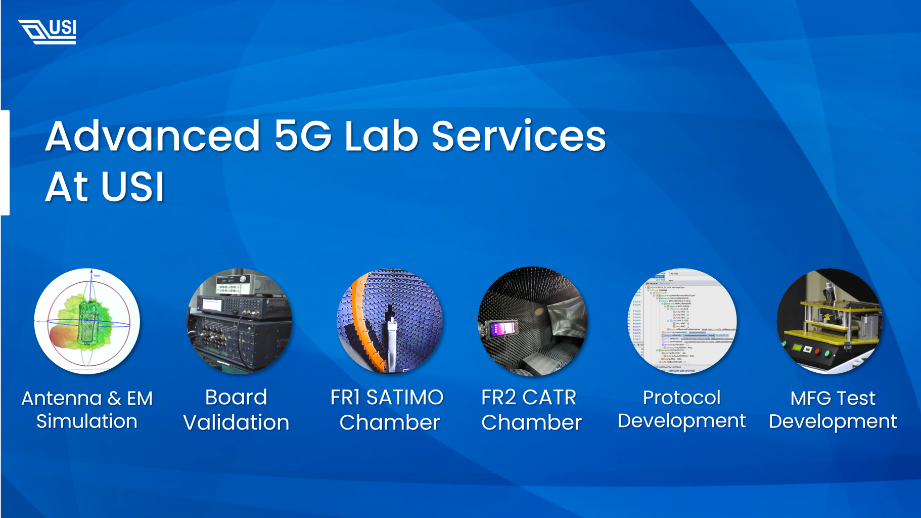 USI’s 5G lab boasts an advanced 5G turnkey services. There are four stages: RF board-level design and validation for 5G FR1/FR2, antenna design, simulation, and over-the-air (OTA) testing for 5G FR1/FR2, communications protocol development and validation, and Manufacturing test development. This gives USI four main advantages: