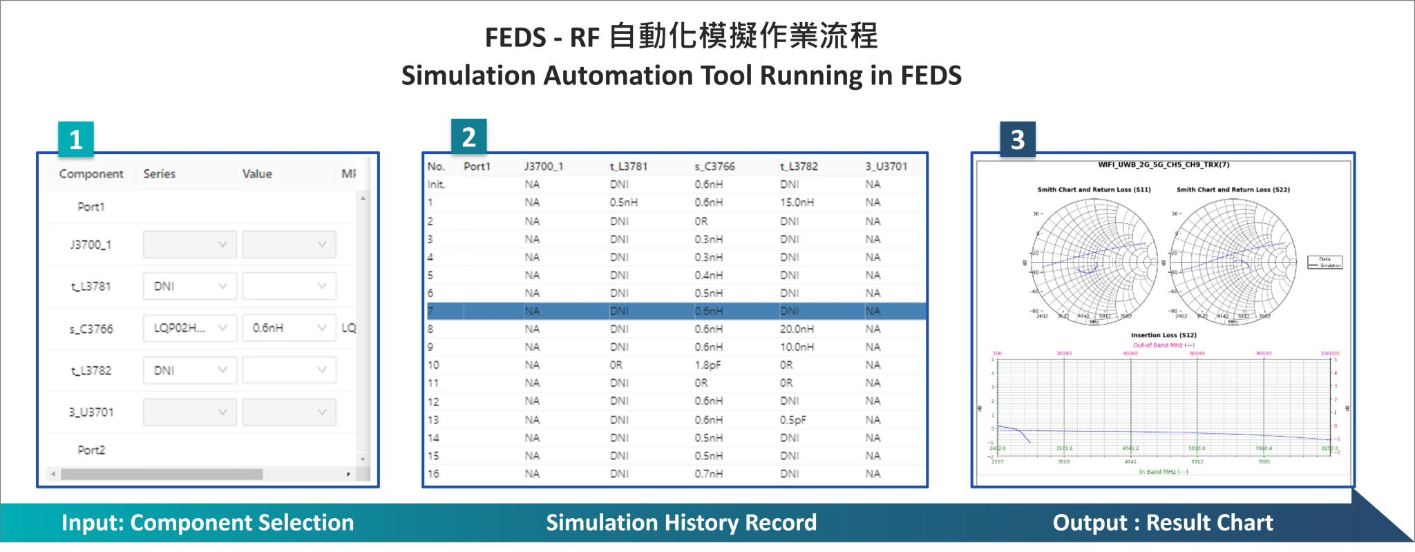 To address the pain points mentioned above, USI's CE R&D team developed the "RF Automation Development Function" on the FEDS platform (FEDS-RF). The core advantage of this system lies in automating key processes within RF design, thereby significantly improving efficiency and lowering the technical barrier to entry. Traditional RF design, from matching and simulation to actual measurement, often involves cross-functional teamwork with high communication overhead. The RF automation development function, through its cloud architecture integrated with internal servers, achieves a automated simulation and testing workflow: