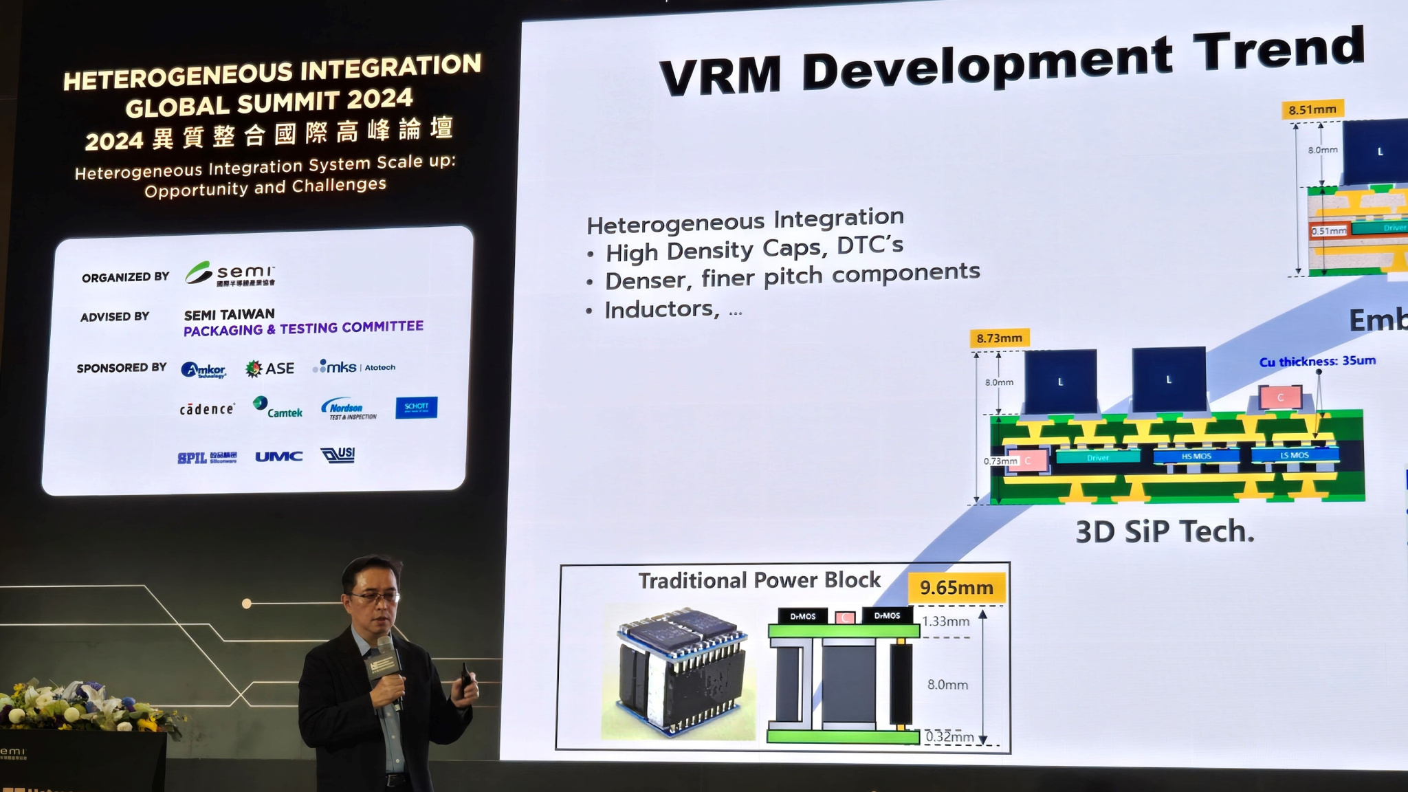 (2024-09-10) On September 5th, USI CTO John Fang delivered cutting-edge Integrated Voltage Regulator Module (IVRM) technology at the "Heterogeneous Integration Global Summit" during SEMICON Taiwan 2024. This innovative technology is poised to power high-performance computing for artificial intelligence (AI) and machine learning (ML).