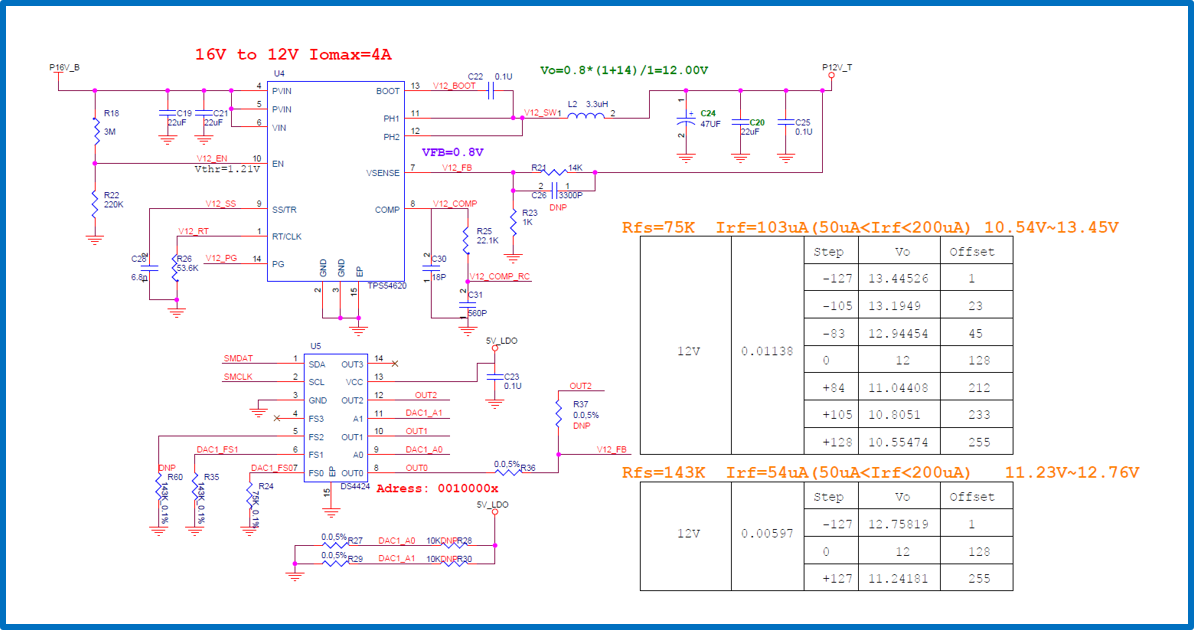 透過 DAC 輸出的電流直接作用在反饋分壓網路上,達到微調輸出電壓的效果。