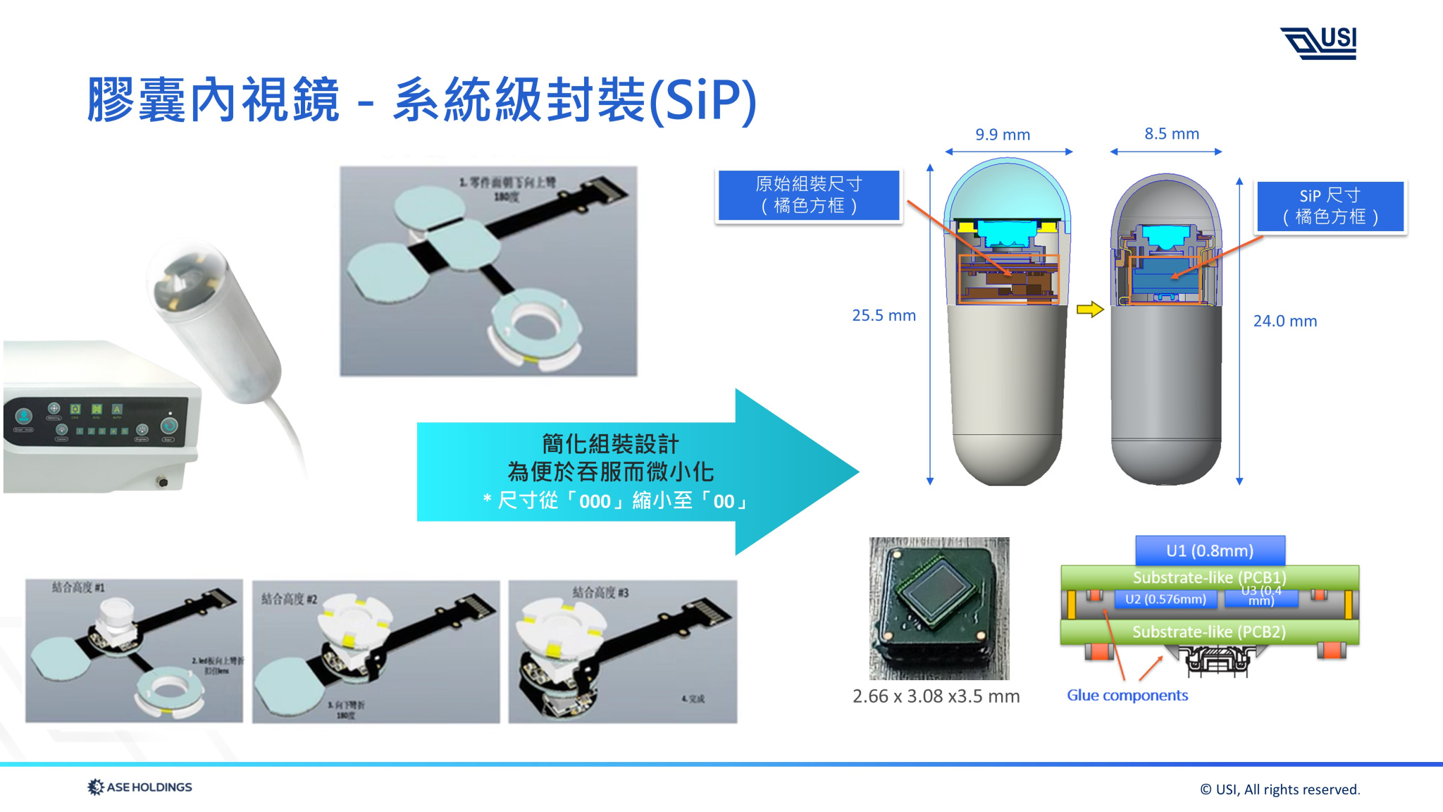 • 醫療膠囊內視鏡:以 SiP 技術整合影像處理與無線傳輸功能,達到極致小型化。